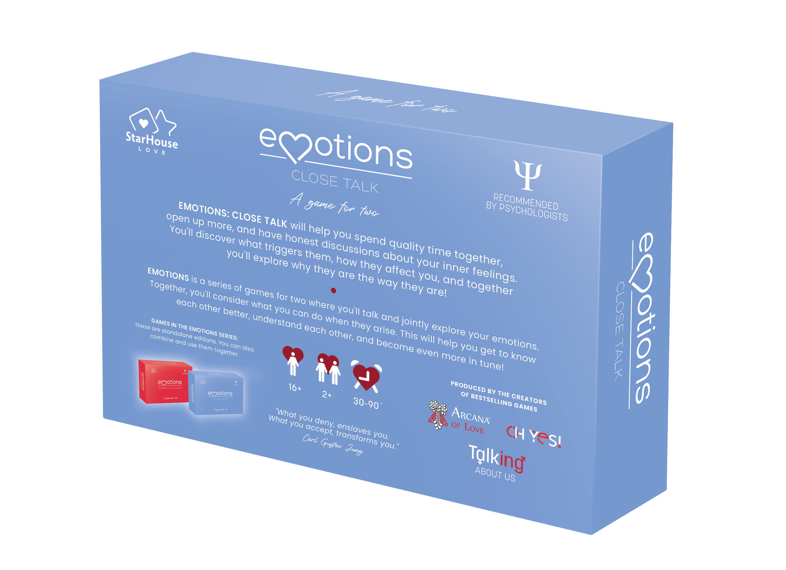 A game for couples - Emotions Close Talk. This game will help you spend enjoyable time together, open up even more, and talk honestly about many of your inner emotions, feelings, and sensations. You'll learn what triggers them, how they affect you, and together you'll reflect on why they are the way they are!