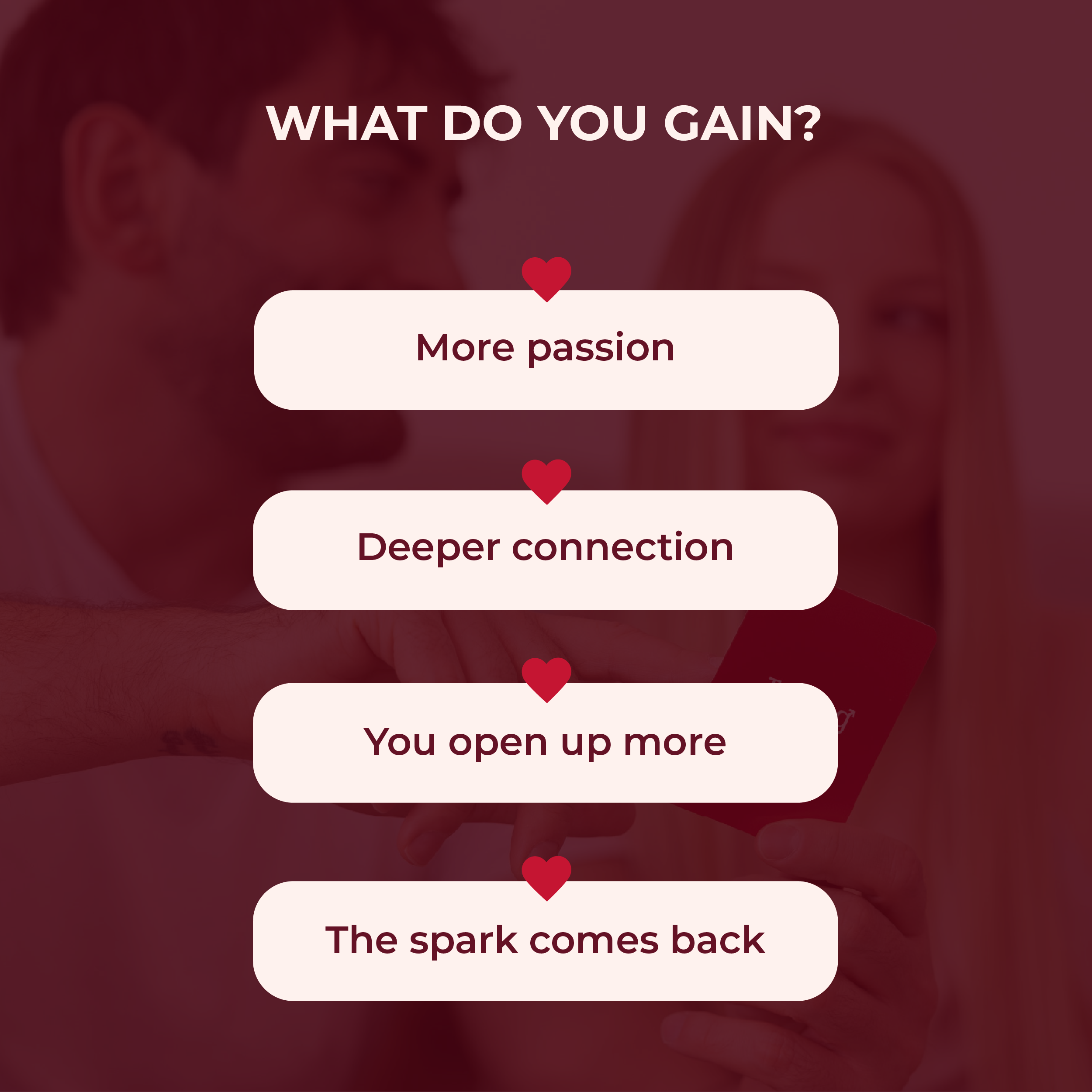 They all concern intimate matters, ingrained in the fabric of a relationship – your own. They allow you to express what's sometimes hard to put into words. This is a game for couples who want to enter the next stage of their relationship – deeper, more mature, more passionate.